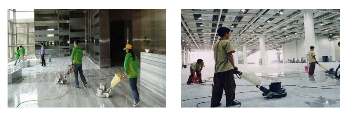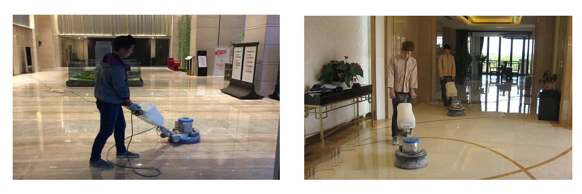 2. 石材翻新:針對磨損、劃痕、失去光澤的石材,利用打磨機(jī)配合不同目數(shù)的磨片,從粗磨到細(xì)磨逐步進(jìn)行打磨,消